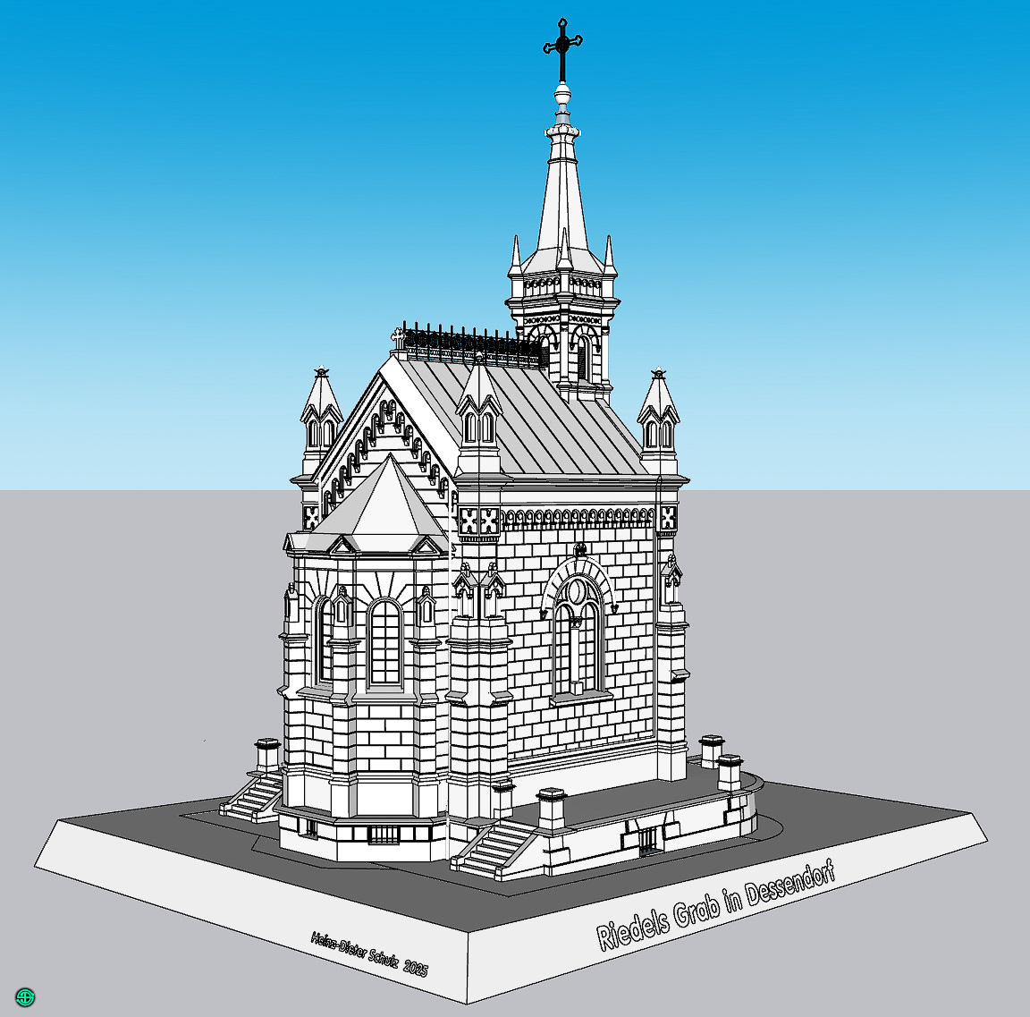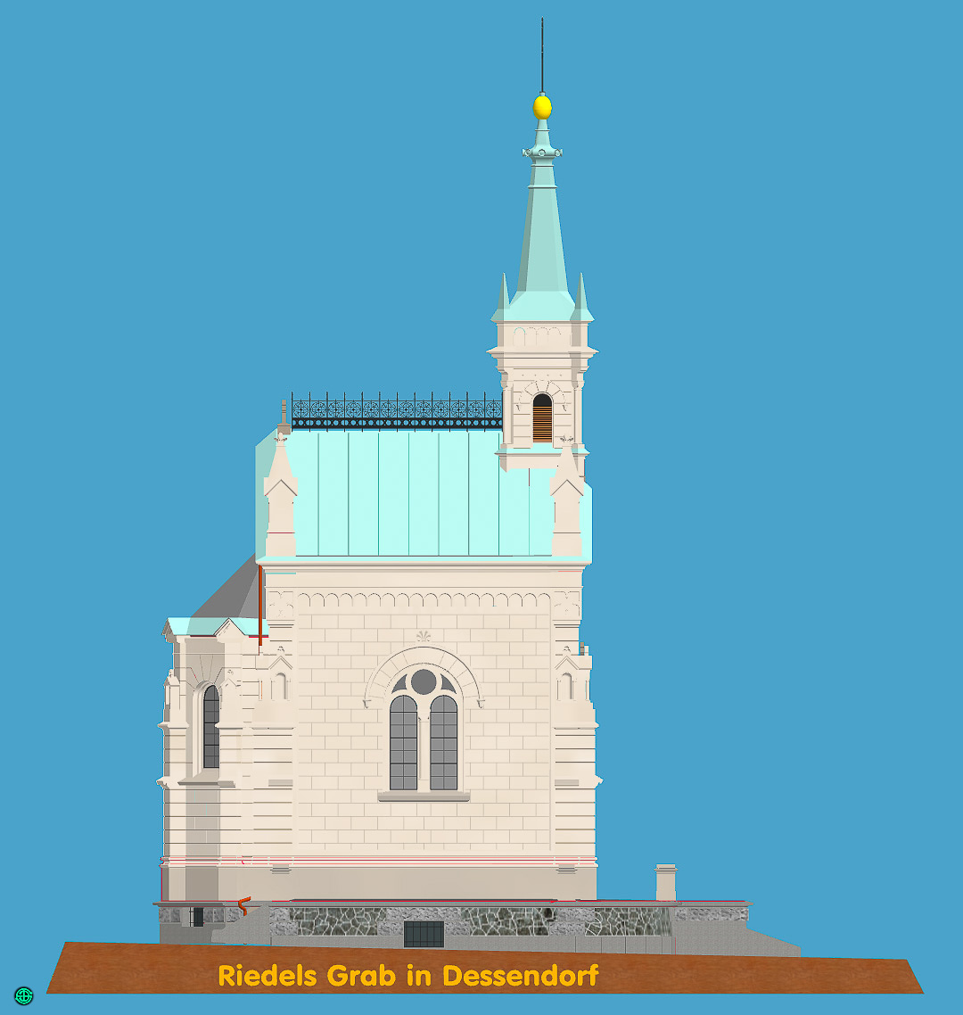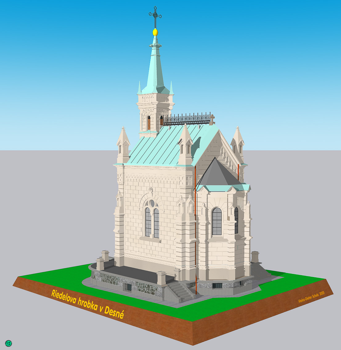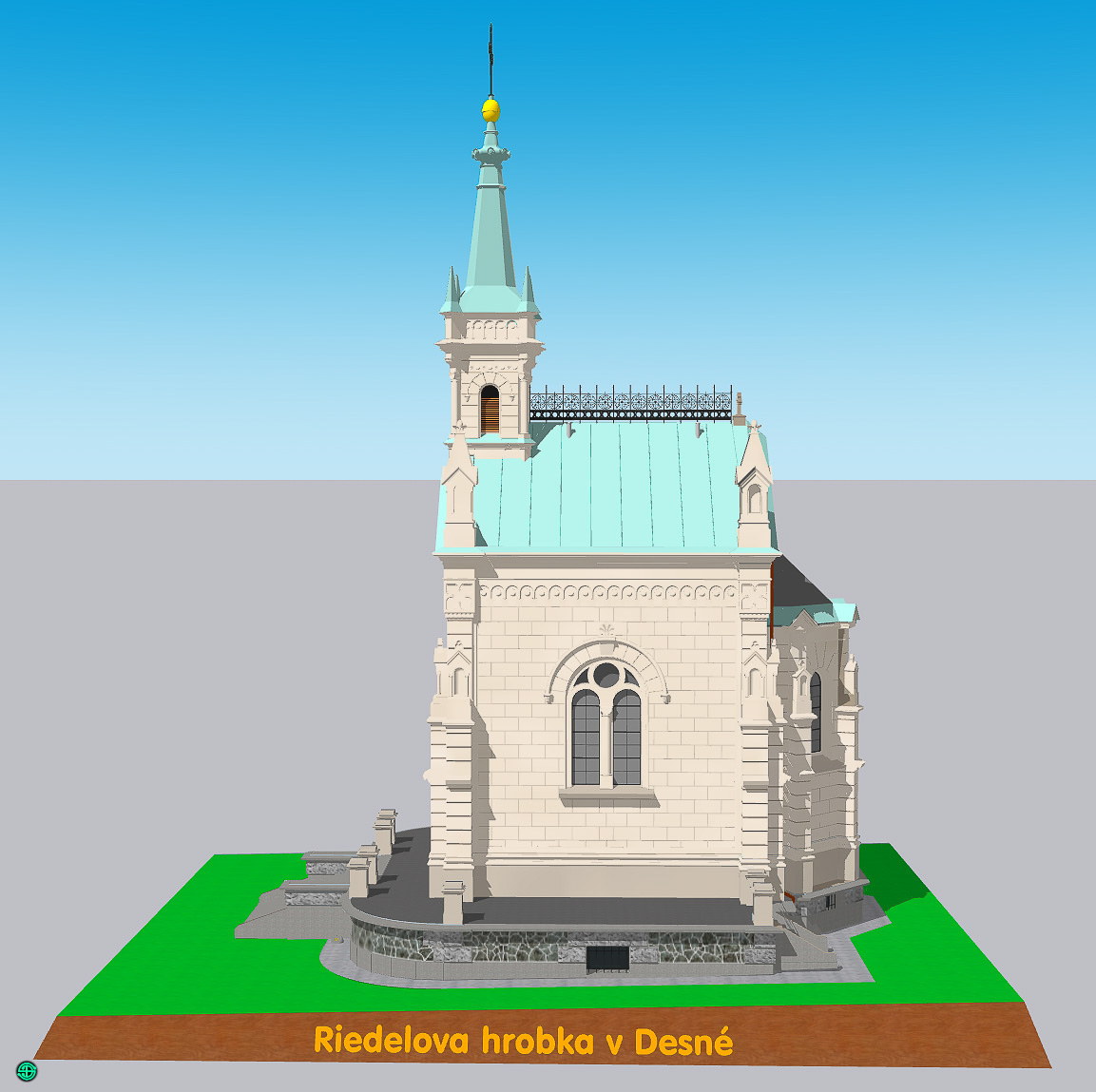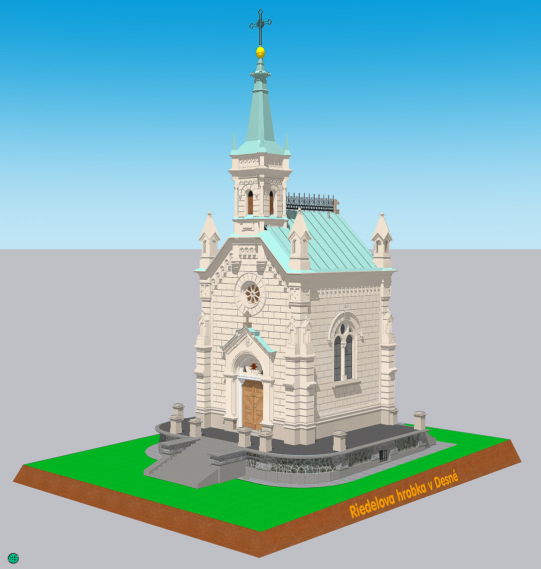 modelový pohled na Riedelovu hrobku