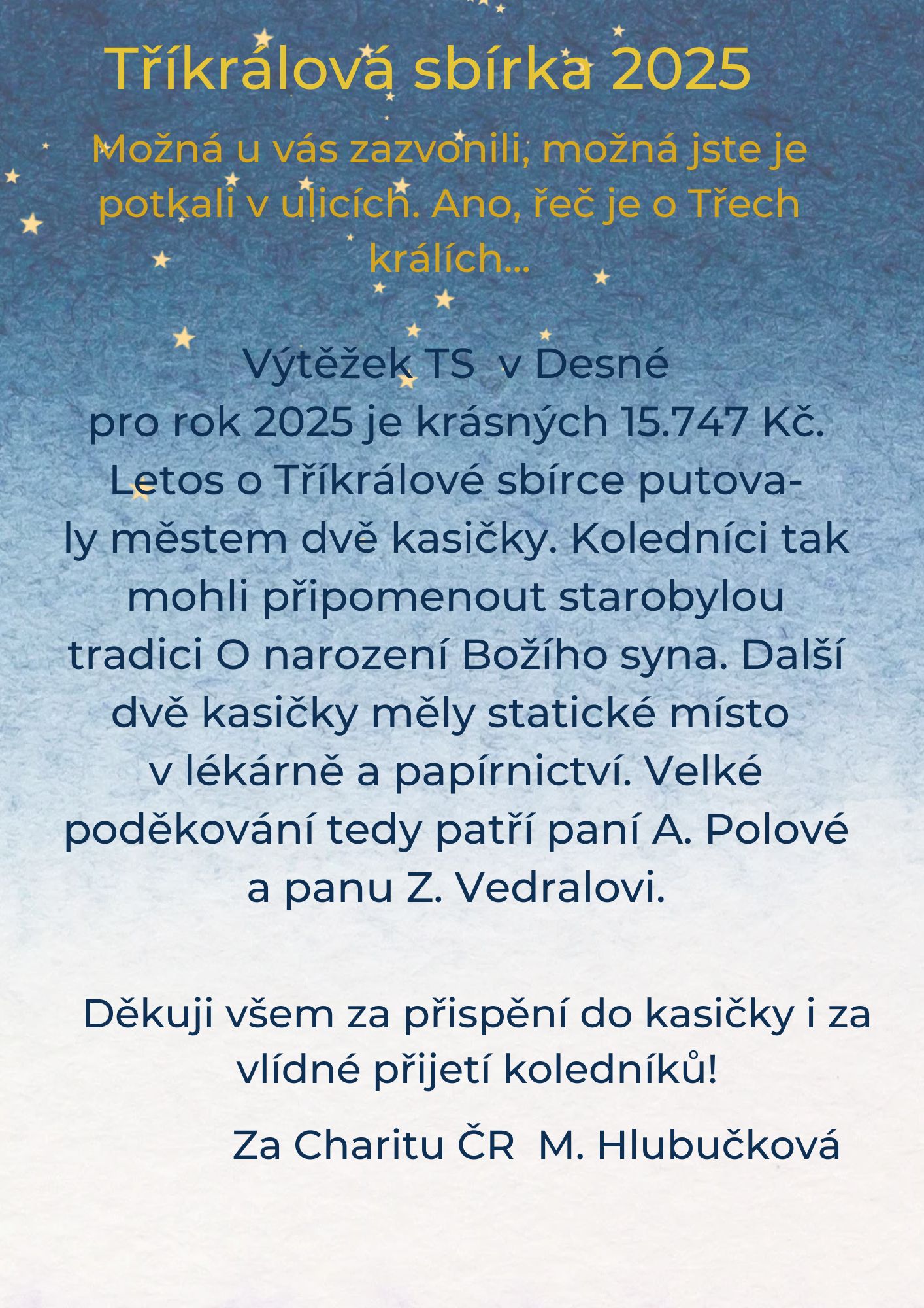 Tříkrálová sbírka 2025 v Desné